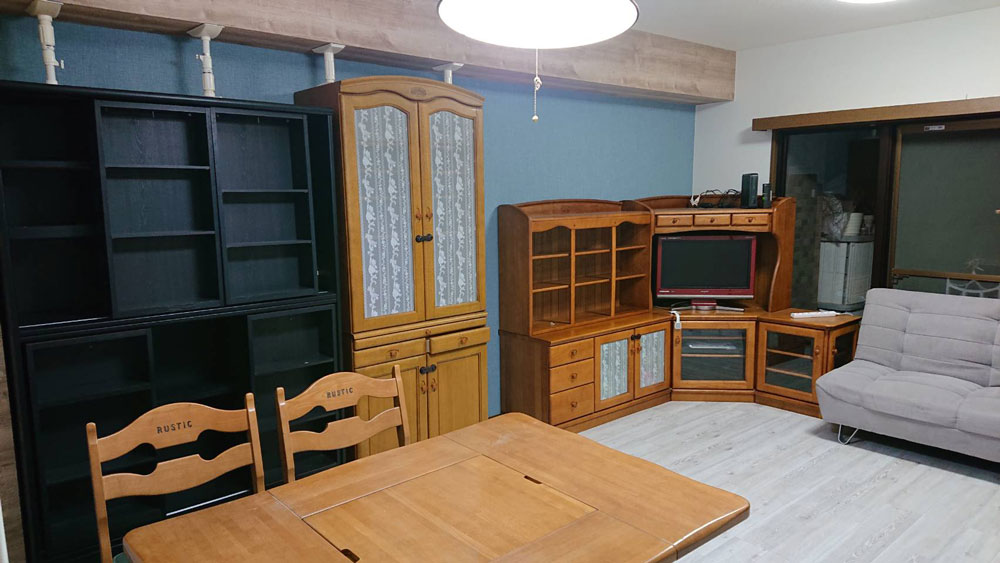 リビング・ダイニングの天井・壁・床を施工いたしました。お客様のご希望で、アクセントクロスを入れたいとの事でしたので、どんなイメージにしたいか、好きな色などのヒアリングを行い、そのイメージに近い複数の施工イメージ画像などを見ながら材料を決めていきました。